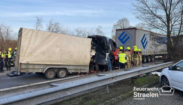 POL-D: Meldung der Autobahnpolizei - Auffahrunfall auf der A 40 bei Straelen - Lkw prallt gegen Sattelzugmaschine - Mann lebensgefährlich verletzt - Verkehrsunfallaufnahmeteam im Einsatz